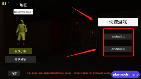 2、“快速游戏”是指和随机匹配,如果想要和朋友一起玩,选择“创建秘密游戏”可以创建房间 。