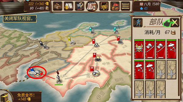 1、首先小编先为大家推荐武田北条和斋藤,这两个是操作比较简单的氏族,在游戏开始的时候玩家是可以解雇初始武将,并且购买一个花费更低的武将,因为随着等级的增加,粮食的消耗会越来越高,所以前中期能省一点是一点。2、这里拿北条举例,开局换好将以后立马进攻武田的武藏,下一回合再回头拿下甲斐,到这里呢差不多开局就算成功了,然后需要做的就很简单了,一直开发自己的领地到满级为止,期间不断炒粮,和周边的势力结盟通商,对方撕毁盟约你下回合马上去结盟,简单说就是不打仗,升级本势力的独有技能就是500块升级一次的那3个技能,都升满,然后攒好兵打斋藤,伊达,上杉,德川从右往左就行了。