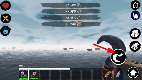 6、观察完环境后,拿出你的钩子,去获取物资。