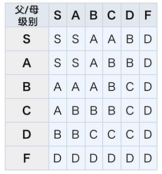 父母等级(S ~ D)相同的情况下,奖励孩子觉醒的次数为S+5次,A+4次,B+3次,C+2次,D+1次。