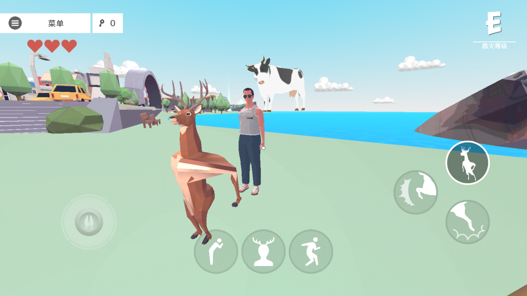 2、主角是一个鹿,走近人,可以按箭头键来做动作。