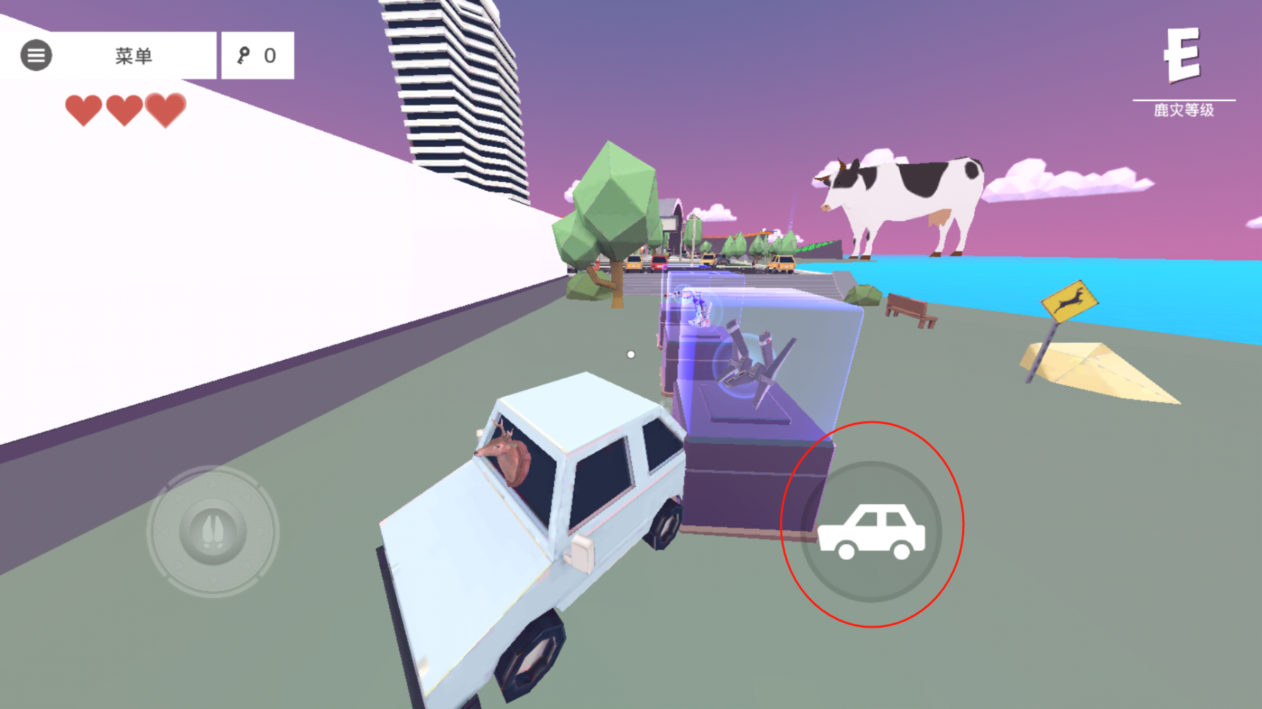 前提是四周也不能有路上来,巨大的奶牛旁边的篮球场就是一个这种地方,警察打不到我们,我们也打不到他们。但是手雷会下坠,可以炸他们。而枪的作用就是攻击建筑提升鹿灾等级,这个方法十分轻松。