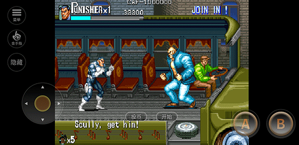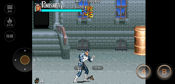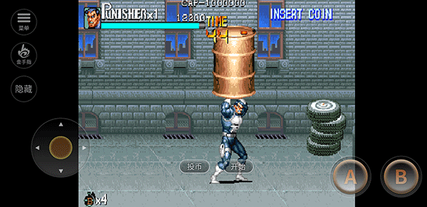 2、进入游戏后玩家将控制一名角色进行闯关,左边控制人物的移动方向,右边的A键控制攻击、拾取,B键跳跃;