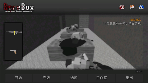 5、在游戏中我们可以点击屏幕右上角的武器图标来更换武器,系统为我们提供了各种各样的武器,手枪、激光剑、机枪、散弹、狙击枪等等。