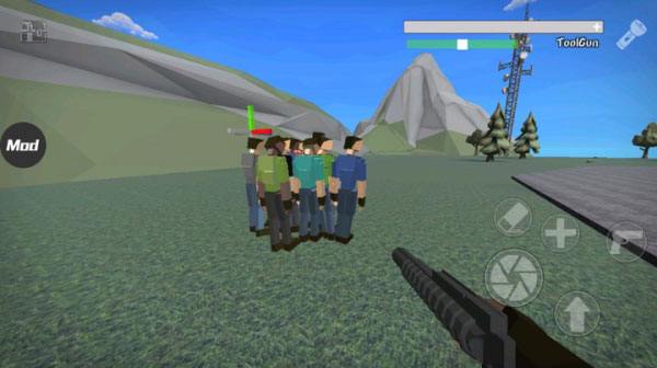 3、并且使用小编手中的这把武器对着物体点击,会出现蓝色的引线,将它们链接起来,就可以通过滑动屏幕来移动这些物品的位置了。