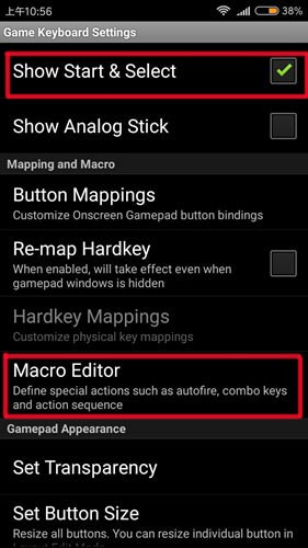 第二步:点击Show Start&Select,勾选上。再点击下面的Macro Editro。