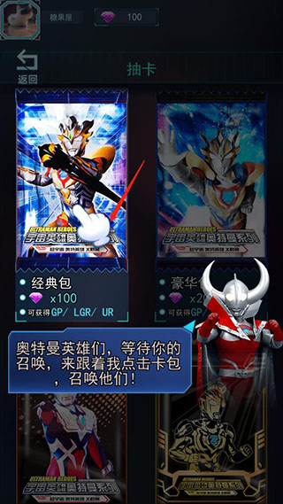 1、使用钻石可以购买奥特曼卡包,点击卡包召唤他们吧;