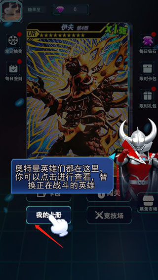 4、点击我的卡册可以查看你的全部奥特曼英雄;