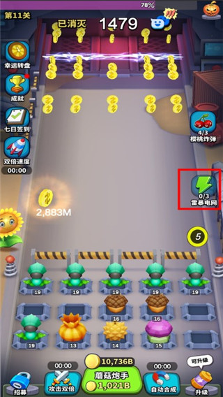 3、雷暴电网直接就是可以将僵尸一键扫除;