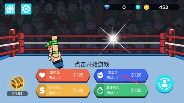 4、游戏的玩法很简单,不停地点击右方按钮,把对手狠狠地拽向自己。