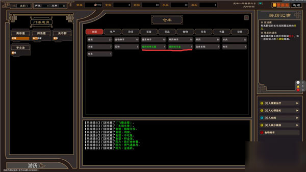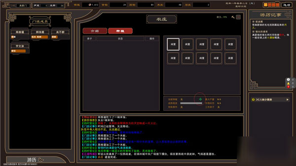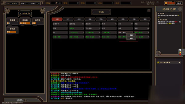 因此游戏前期可以通过出售各种不需要的资源来赚钱,比如煤炭,宝石,矿物,到达游戏中期之后可以在大殿研究<镖局>,通过走镖赚钱,所以游戏各阶段银钱都应该是够用的。