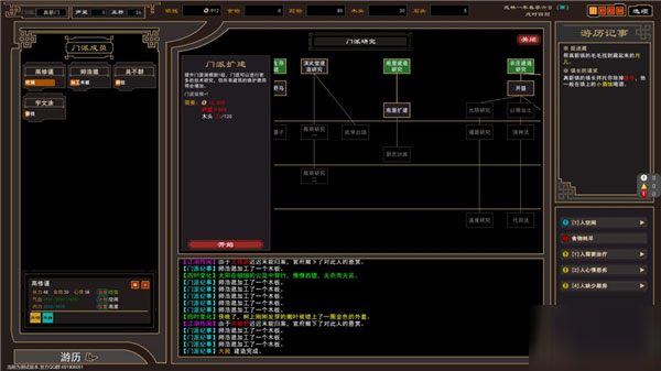 1、开放的江湖游戏的游历玩法以MUD类游戏为基础,构建一个开放的江湖。你可以摆脱主线剧情的限制,带领弟子在地图中自由探索