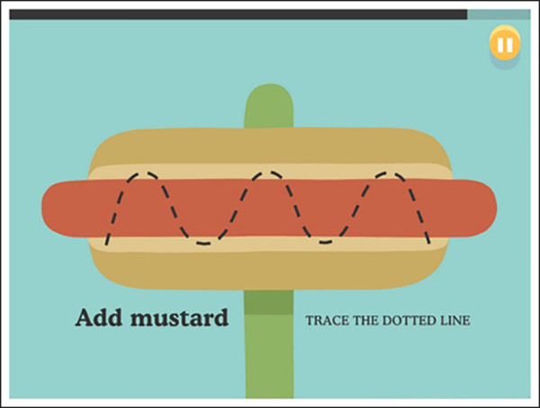 6、玩法:玩家看见中间红色的香肠上的虚线,玩家需要用沙拉把虚线遮住。