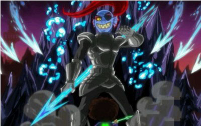 当我们到达新场景瀑布小路时,我们将会多次遇到鱼姐,但是并不会进入战斗界面,还是需要躲避她的长矛攻击。并且还会有一个怪物小孩(小黄豆)会保护我们,在我们几次要被鱼姐抓住时,他就会帮助我们摆脱困境。