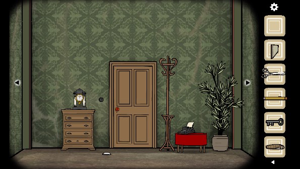 12、点击打字机输入英文后出现一张纸,用剪刀剪开,移动下面的纸使其叠加后获得提示「14335」,点击电话输入14335,获得提示让我们去看钥匙孔