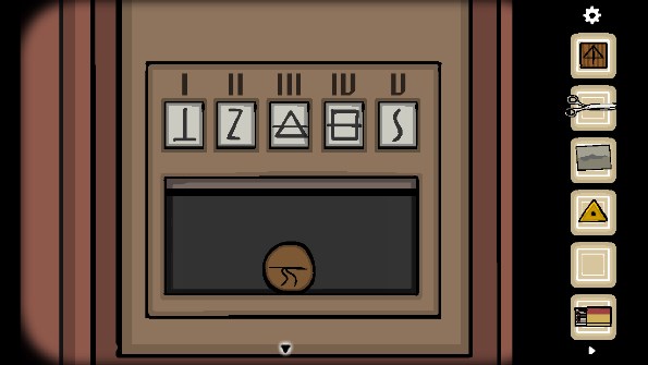 7、来到对面,用拉手拉下投影幕,按照投影幕的标记对应位置后获得两个数字「Ⅴ、Ⅳ」,其对应的符号为「X、·」,拿走投影幕上的「照片」