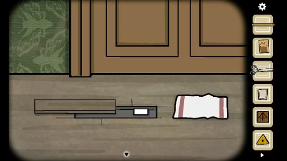 4、拿走掉在地上的「照片碎片」,用钥匙打开下面的抽屉获得「铁块」
