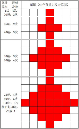 4、元素属性等级提高到100级,可以打到你射程外的怪物,比如你只有射程4,但是可以打到射程7的位置(也就是说,主角的射程取决与武器射程+元素属性带来的射程)。
