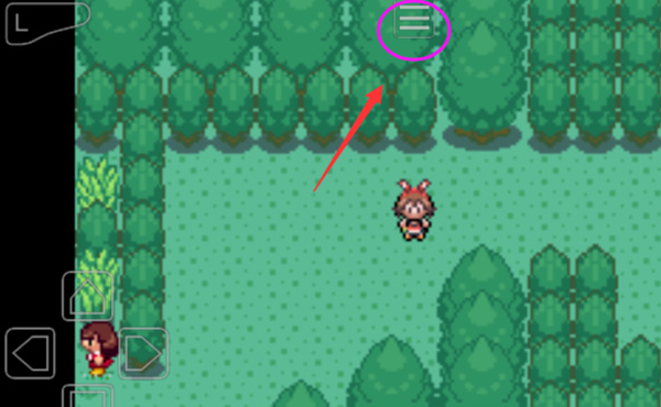 1、在手机上开打“myboy模拟器”,运行游戏,选择上方【三条杠】图标,