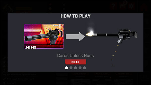 1、从本站下载真实枪械2官方最新版,进入游戏开始有新手教程,使用卡片即可解锁目标枪支;