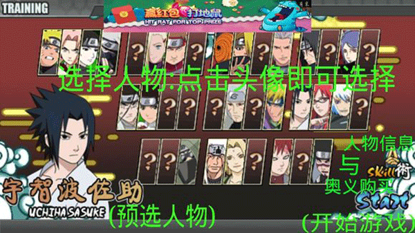 4、英雄的2个奥义技能分别在2级,4级时开启(当局战斗内)奥义技能释放需要承受伤害来获取 查克拉(简称:怒气值)战斗界面中,还有回血技能(回血技能无蓝消耗,但是会消耗当局战斗内金币)。