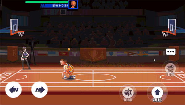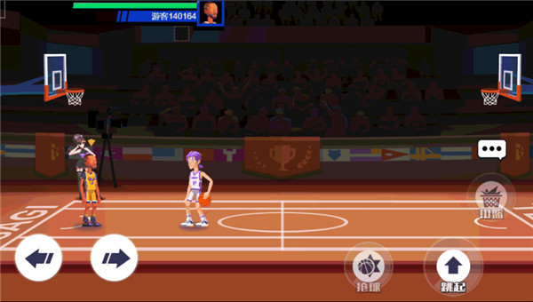 小篮:在发现对方起跳进行扣篮时,提前在我方篮下(半弧形的标记)附近等待,等对方起跳一小段距离后点击“跳起”按键即可。这个操作略有难度,需要把握时机,多多练习哦!