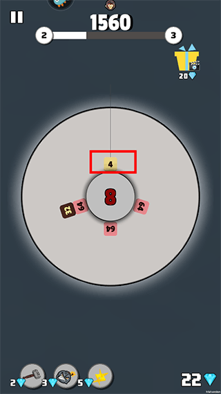 2、一般开始游戏后会先给一个基础牌2或者是4,这个时候只要让他落下就好啦;