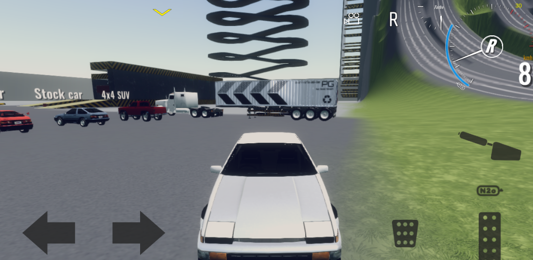 3、进入游戏后,左边的按钮控制车辆的左右移动,而右边的控键则是刹车和油门;