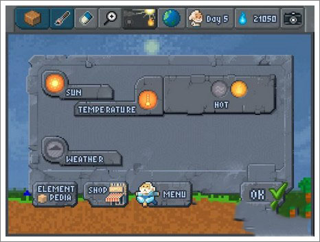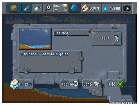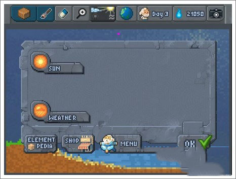 1、通过令人惊叹的像素艺术,发挥想象力创造属于你自己的世界,和各种元素和生物一起游戏,整个世界由你来创造或毁灭,能阻碍你的只有你的想象力!2、利用石头、水和泥土等基础的建筑材料开始建造自己的世界,随后通过种植植物,开垦山脉,创造生命并使用高级工具,来创造更多更复杂的元素。不久之后,你将能够获取无机元素如金属和灯泡等,让你居住在自己创造的自然与科技共存的世界中。