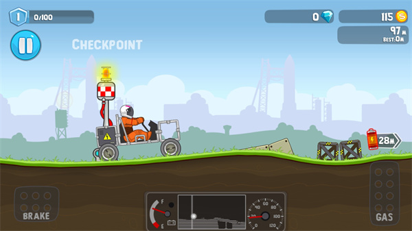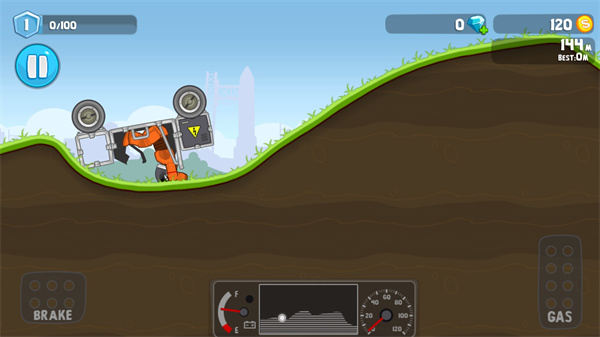 由于本作是横版越野挑战,所以在操作上则使用了按钮控制的方式,按住屏幕左下角的按钮可以控制车辆后退,按住屏幕右下角的按键可以控制车辆前行,本作的操作与各大流行赛车游戏截然不同,采用的是类似技巧性平衡控制效果,玩家们通过左右按钮来控制车辆的前进和后退,并且在必要时刻还需要以此调节车辆重心平衡,来达到越野挑战的效果,就难度而言,控制起来比速度类赛车要更大一些,不过激烈程度显然不及对方。
