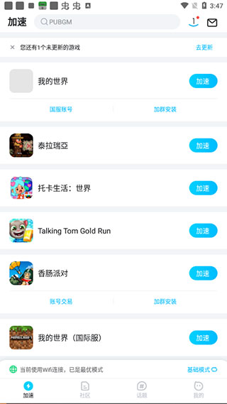 狂野飙车9等热门游戏的多个区服加速!为数千款手游提供一键网络优化加速!