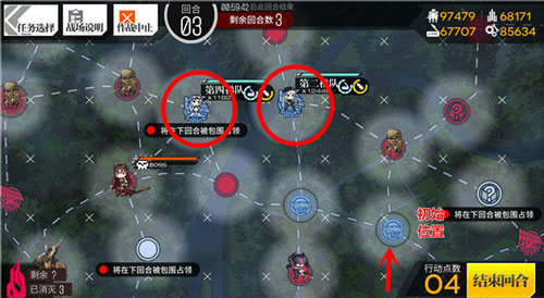 当衔尾蛇的血量低于一定量时会进入第二阶段,此时她会频繁释放技能:恶毒绽放(会暂停播放技能动画),用导弹轰炸地图上随机两格位置,处于该位置的单位同样需要及时移位躲避。当SMG血量不足时,及时将AR与SMG换位,让AR分担一部分伤害,给RF的输出创造时间。只要坚持到衔尾蛇倒下,剩下的战斗基本就没有问题了。