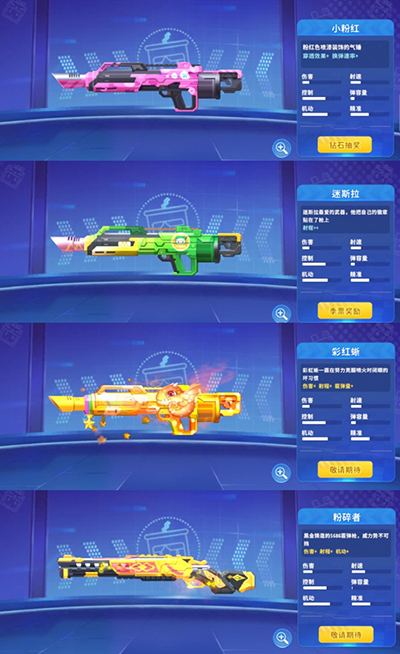 7、枪械方面也是相同的枪械皮肤只有品质颜色的区分而没有属性的加成,不过不得不说在《迷你枪战精英》中枪械皮肤的设计还是很用心的,迷你世界的设计水平在本作中还是很在线的。