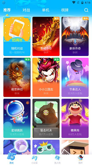 能够和在线的QQ好友一起进入房间自动匹配休闲房间。
