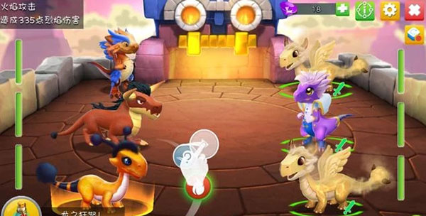 3、战斗期间,把元素滑到龙身上不要立即放开,可以查看对敌方龙伤害的红色血条,合理选择元素用在合理的龙身上,可以减少自己龙受到的伤害。
