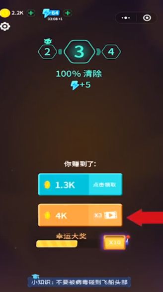 3、在游戏通关后,点击“观看广告视频”,获得金币。