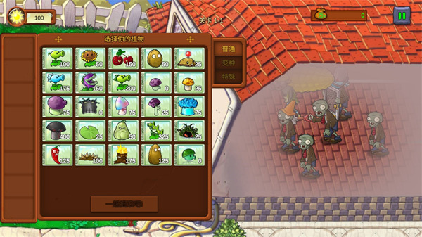 1、首先我们进入植物大战僵尸重生版游戏中,在开始游戏之前选择好自己的植物,注意看有哪些僵尸!