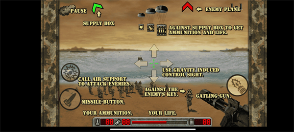 4、拥有加特林机关炮,火箭弹和空袭指令等多种武器,场面震撼和真的战争一样!