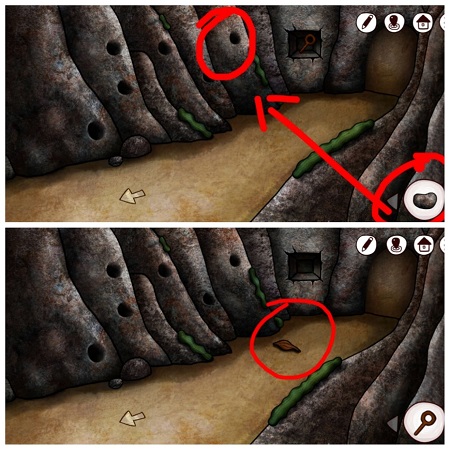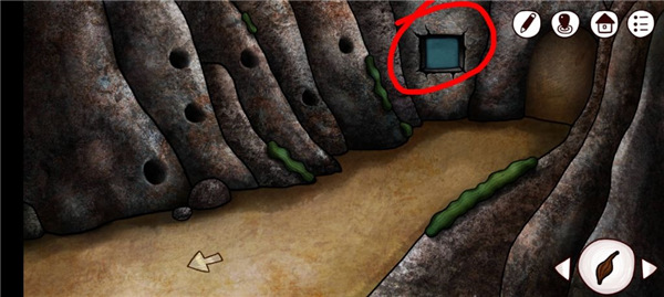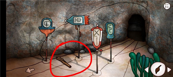 3、这个时候我们收集最中间的那颗石头,还有号角和螃蟹(号角和螃蟹可能一下子出不来,再等一会或者转悠转悠别的路线就出来了)然后点击最右边的箭头。