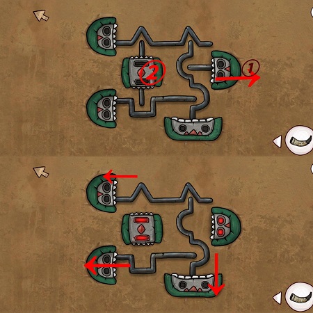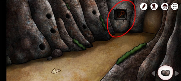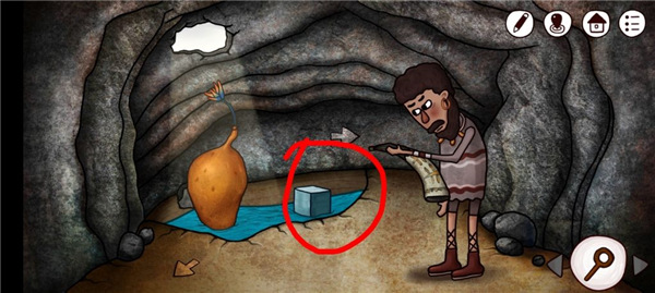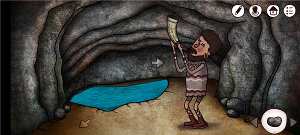 6、开门啦,会到一个小房间,然后我们把号角拿给他,他会吹出一个洞,然后点击右边的小箭头儿