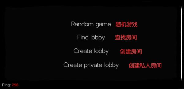 2、进入后可以发现有着4个选项,分别是“随机游戏”、“查找房间”、“创建房间”、“创建私密房间”。