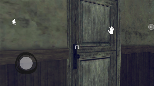 4、左边控制角色的方向,右边每次碰到物品就会出发相关功能键,比如我们点击手掌就可以打开房门;