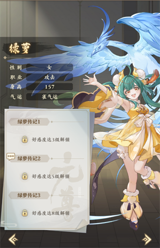 推荐理由:通过与【女性】源师共同上阵激活的列阵缘分,以及不俗的单体输出能力,绿萝可以在大部分体系内担任副C/辅助位置。