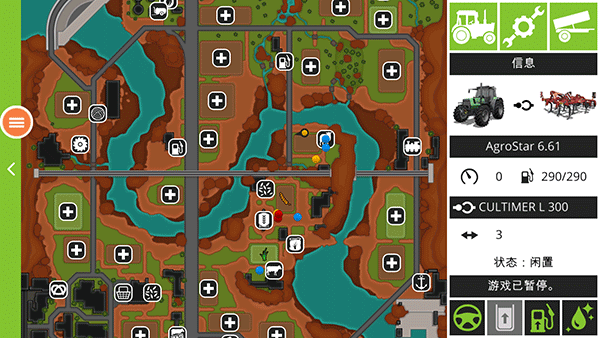 4、世界地图里可以查看附件的农场、商店、以及加油站等。