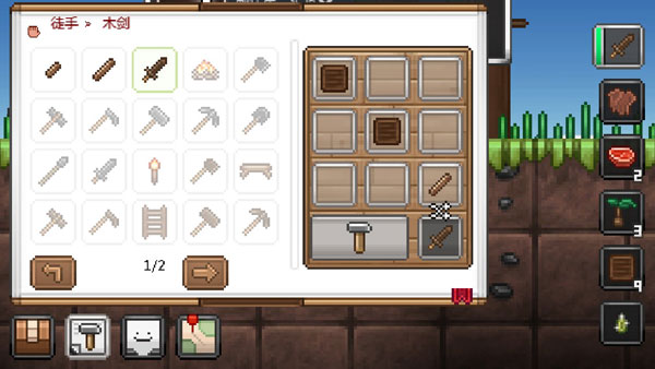 在游戏下方合成书里会有已经获得的图纸,图纸可以知道制作工具所需要的材料和什么工具台。很多工具没有工具台是做不出来的,使用需要利用手上的材料制作出基础的工具台,之后基础工具台就可以制作更高级的工具台。