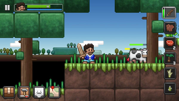 吃食物和睡觉都可以回血,食物可以通过动物身上的肉或砍树获得的果子、宝箱开出的蔬菜获得,但回复的血量很少。睡觉需要在家里建造出床,当夜晚来临走到床边,点击床即可进入睡眠,到了白天血量就可回满。(PS∶睡觉不能太早也不能太晚,那个时候点床会没反应)。