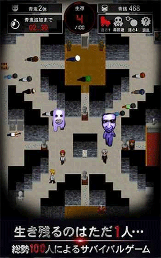 3、可怕的青鬼在地图中自由游荡,你必须要躲避他们,如果被他们发现你会被干掉的;