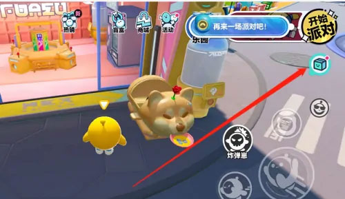 1、首先我们打开进入蛋仔派对的游戏界面,点击箭头所示的按钮;