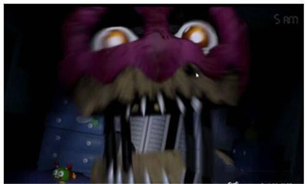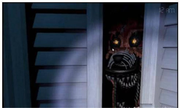 2、后半夜是玩家比较忙碌的时候,除了前面要做的事情外,中间的狐狸来了,第一次到来时跟第三夜一样有声音和柜子门的提示,但是接下来它还是持续想打开柜子门出来。而且提示不是很明显,需要加入巡查的循环里,会使玩家更加手忙脚乱,只要记住按照左、右、中间再后面的顺序持续到六点就过了。(具体的操作说明会比较简单,但是带入实际的游戏环境还是会变得比较困难,细心些、速度快些就可以通关了)