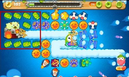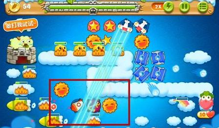 2、打掉太阳旁边的道具获得2个炸弹星和2只玩具飞机,此时前期就基本没什么压力。